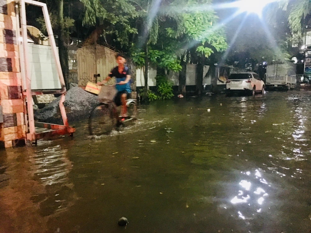 Đến gần 21 giờ tối nay (1-10) nước vẫn chưa có dấu hiệu rút. Hà (sinh viên) cho biết anh cũng là dân Thanh Đa. Hôm nay, phải bắt xe ôm về vì sáng nay ngập nặng, đi xe tay ga rất dễ bị chết máy. “Hơn 20 giờ em mới về nhà nhưng cũng không ăn thua. Nước vẫn cao, nhà lại trong hẻm, em nói anh xe ôm thôi để em xuống đầu ngõ, em tự đi bộ vào vì sợ xe anh chết máy lại khổ..." - anh Hà nói.