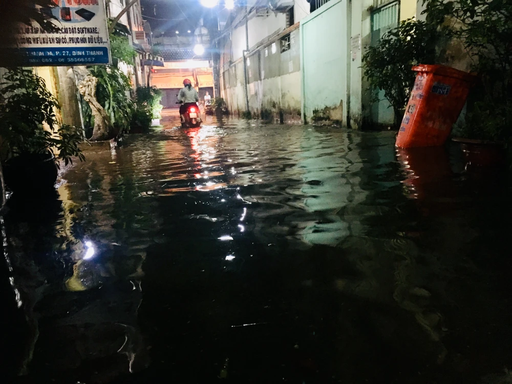 Đến tối 1-10, nhiều khu vực tại TP.HCM vẫn chìm trong nước bẩn: như Bình Thạnh (đường D2, Bình Quới…), quận 2 (phường Thảo Điền).