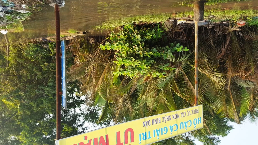 Nhiều người không thể vào hồ câu được vì nước dâng cao.