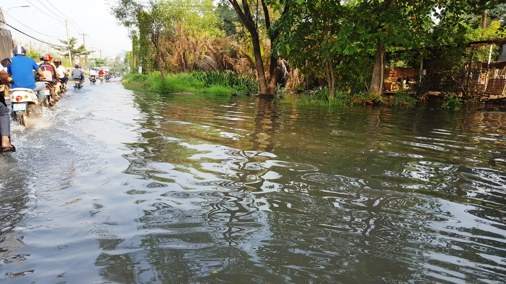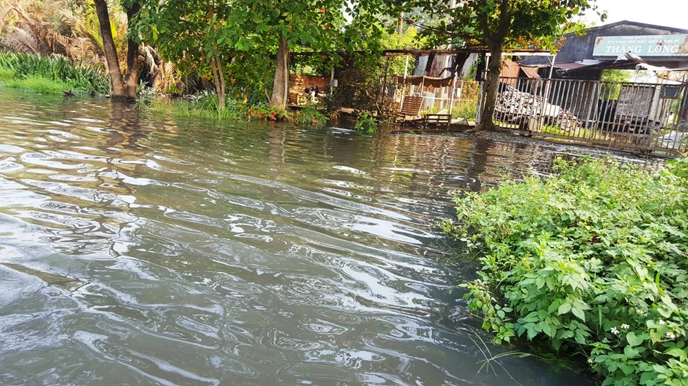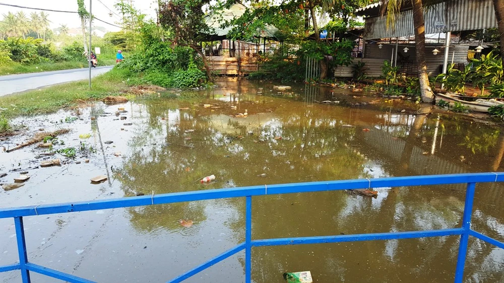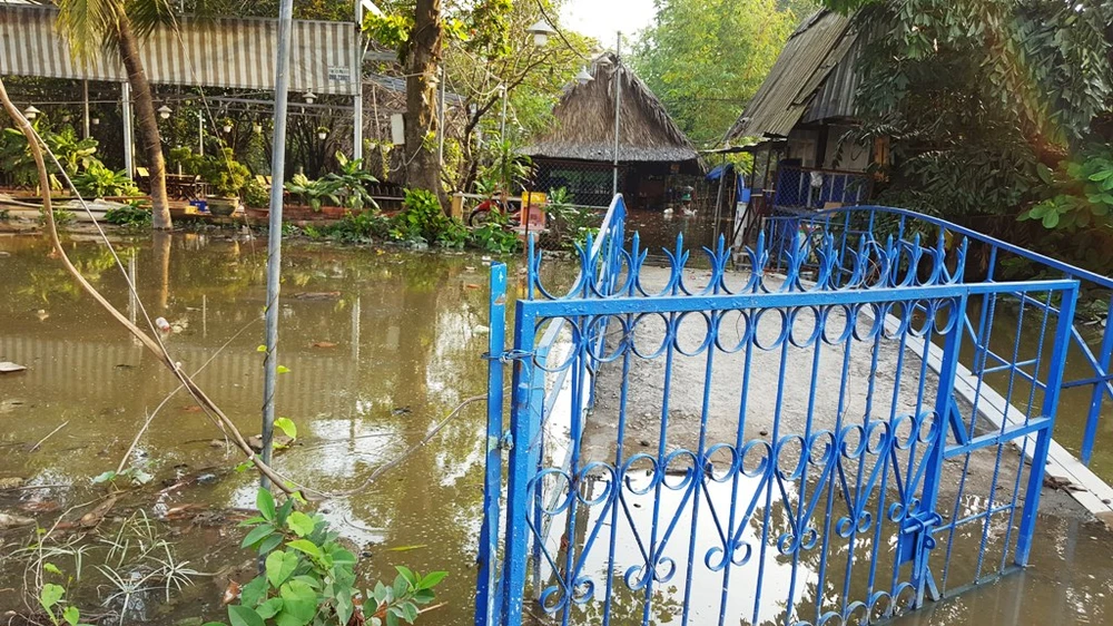Bên cạnh đó, nhiều nhà dân ở quanh khu vực này bỗng nhiên trở thành ao gây khó khăn trong sinh hoạt. Kế bên là các cửa hàng kinh doanh, các doanh nghiệp cũng phải ngưng hoạt động vì triều cường.