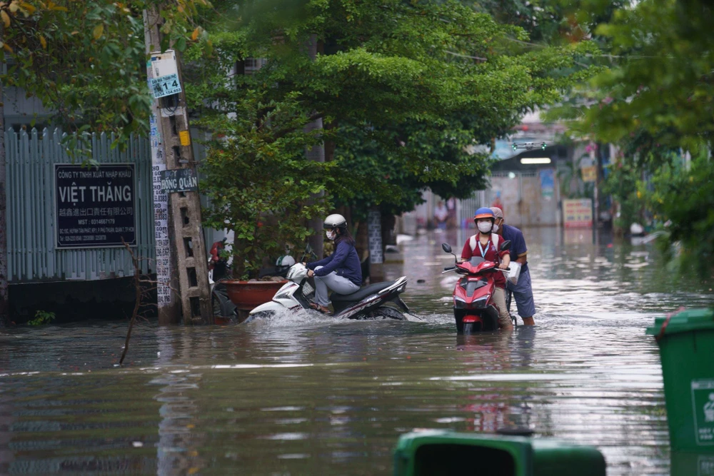 Do ảnh hưởng bởi triều cường, người dân đi lại khó khăn, một số xe máy đã bị chết máy trong quá trình di chuyển.