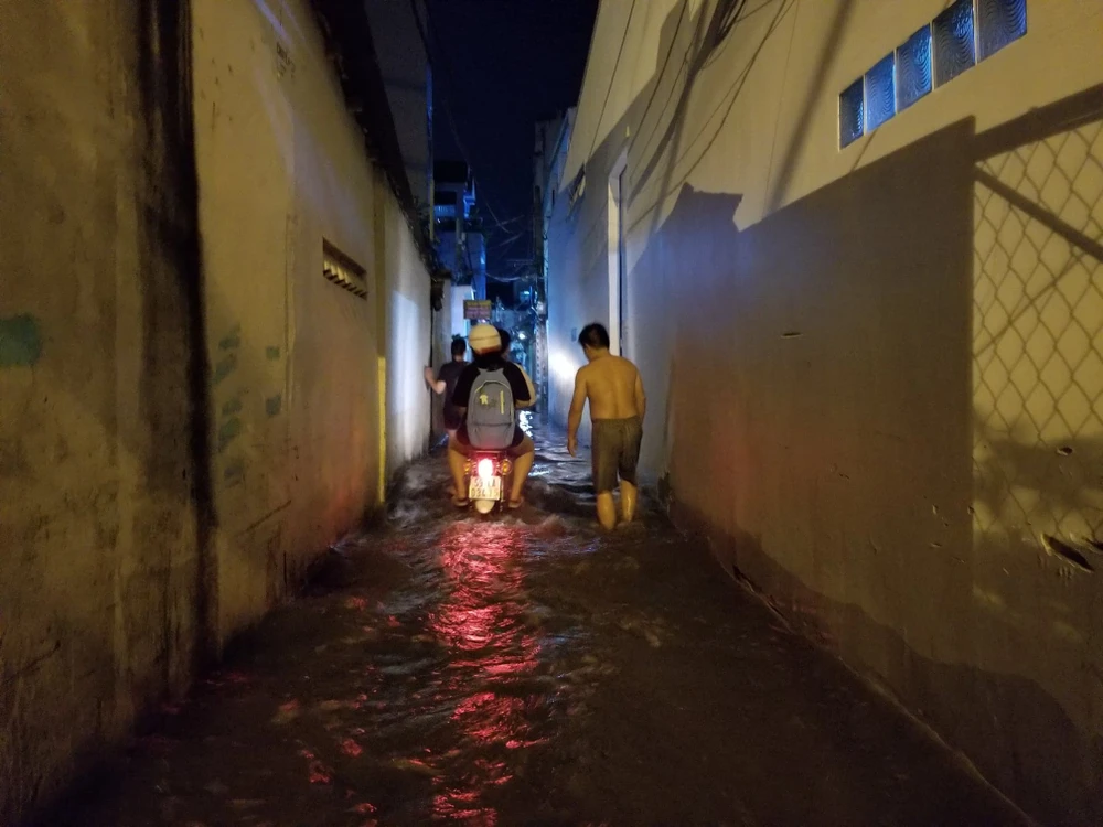 Theo ghi nhận của PV, đến 21h nước vẫn còn ngập hơn nữa mét, cuộc sống sinh hoạt của người dân gặp nhiều khó khăn, nhiều xe chết máy bị chết máy, đồ đặc trong nhà bị ngập nước.