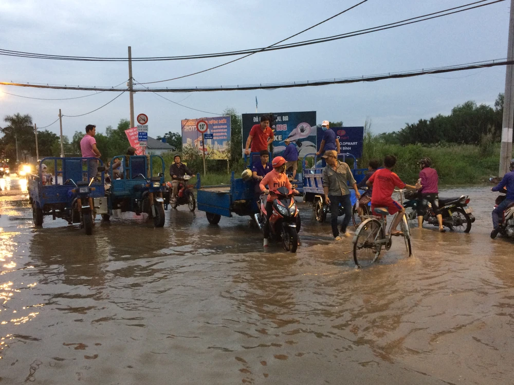Đến 18 giờ, nước bắt đầu tràn nhiều hơn kéo dài từ chân cầu Long Kiểng đến cầu Rạch Tôm, kéo dài khoảng 2,5 km. Triều cường đạt đỉnh gây ngập sâu khiến giao thông trên tuyến đường này gần như bị tê liệt, phần lớn xe máy phải tấp vào hai bên đường tránh chết máy, nhiều người dắt xe bị chết máy lội bì bõm trong nước ngập sâu để tìm chỗ sửa.