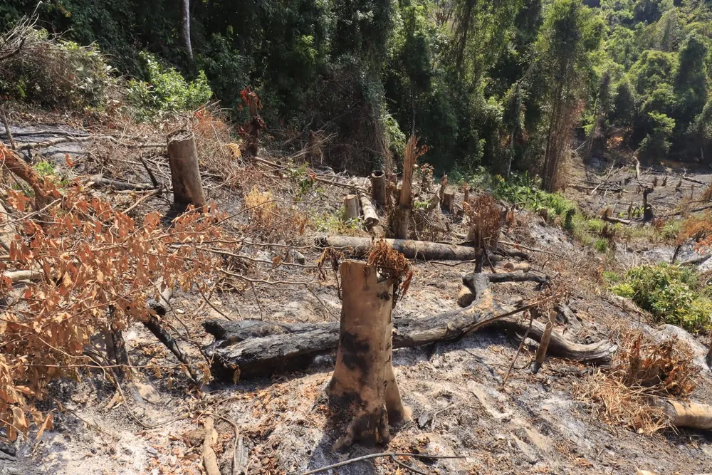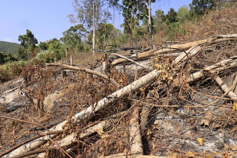 Nhiều cây rừng bị chặt phá, đốt cháy. Ảnh: Tr.Thuỵ