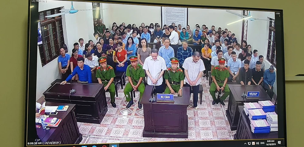 Các bị cáo tại tòa. (Ảnh chụp qua màn hình)