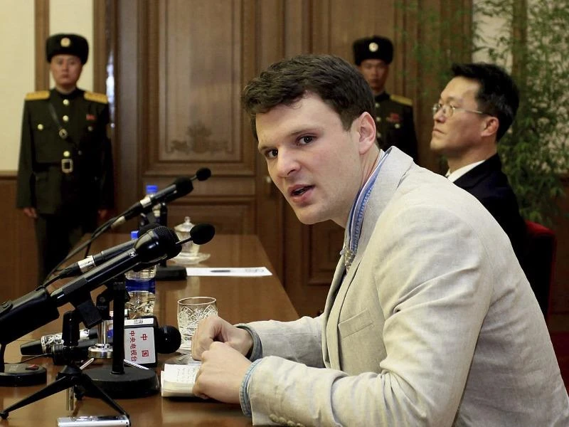 Warmbier, hiện 22 tuổi, là sinh viên ĐH Virginia. Công dân Mỹ này đã bị Triều Tiên giam giữ trong 17 tháng qua vì đánh cắp một biểu ngữ tuyên truyền của Triều Tiên tại một khách sạn anh ở trong lúc anh đi du lịch tại Triều Tiên.