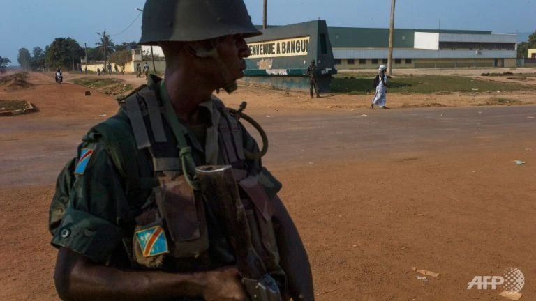 Một binh sĩ Congo thuộc Ủy ban hỗ trợ quốc tế do châu Phi chủ trì đứng canh gác tại Cộng hòa Trung Phi hôm 19-2-2014. Ảnh: AFP