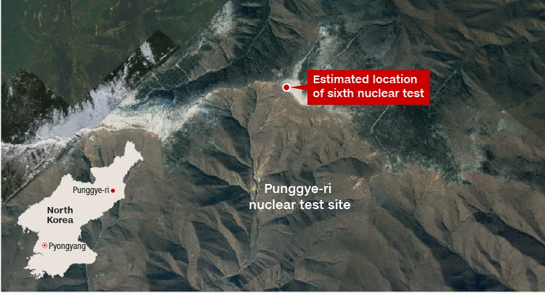 Bãi thử hạt nhân Punggye-ri của Triều Tiên. Ảnh: CNN