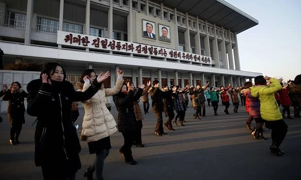 Người dân nhảy múa gần sân vận động trong nhà Bình Nhưỡng hôm thứ Sáu để ăn mừng vụ thử hạt nhân. (Ảnh: AP)