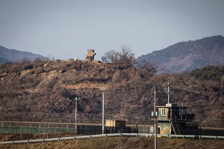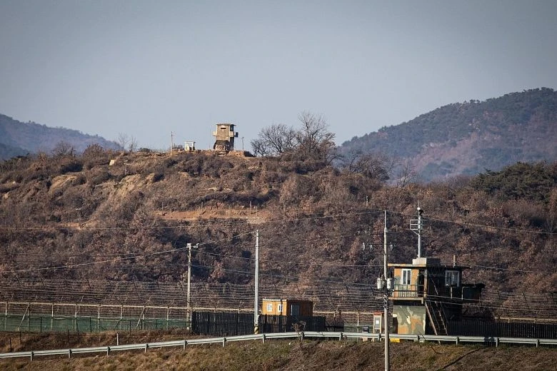 Khu vực canh gác của Hàn Quốc và Triều Tiên đối diện nhau qua biên giới ở TP Paju, tỉnh Gyeonggi-do, Hàn Quốc. Ảnh: EPA-EFE
