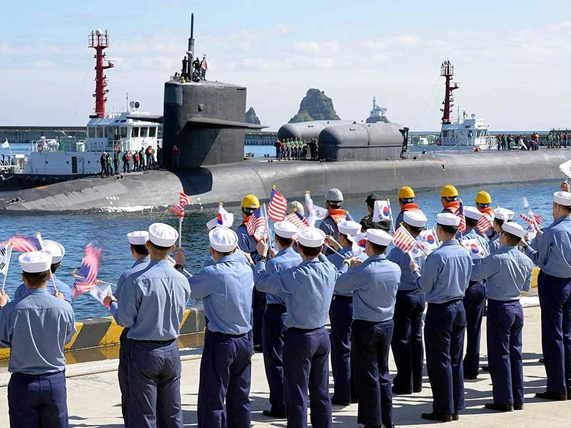 Các khí tài quân sự tiên tiến của Mỹ cũng đã được điều động tới bán đảo Triều Tiên. Ngày 13-10, tàu ngầm USS Michigan với 154 tên lửa hành trình Tomahawk của hải quân Mỹ đã cập cảng Busan, Hàn Quốc. Tàu ngầm tên lửa này còn có năng lực triển khai đổ bộ các đơn vị đặc nhiệm của hải quân Mỹ.
