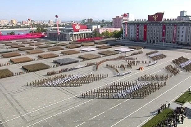Lễ diễu binh kỷ niệm 70 năm thành lập đảng Lao động Triều Tiên hồi năm ngoái. Ảnh: Mirror