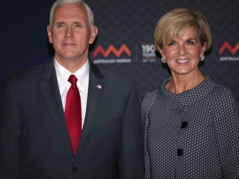Bà Julie Bishop và Phó Tổng thống Mỹ Mike Pence trong cuộc gặp hôm 22-4. Ảnh: GETTY