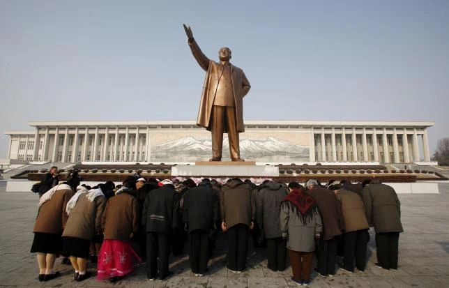 Người dân Triều Tiên cúi đầu trước tượng đài “Lãnh tụ vĩ đại” Kim Nhật Thành ở thủ đô Bình Nhưỡng. (Ảnh: Reuters)