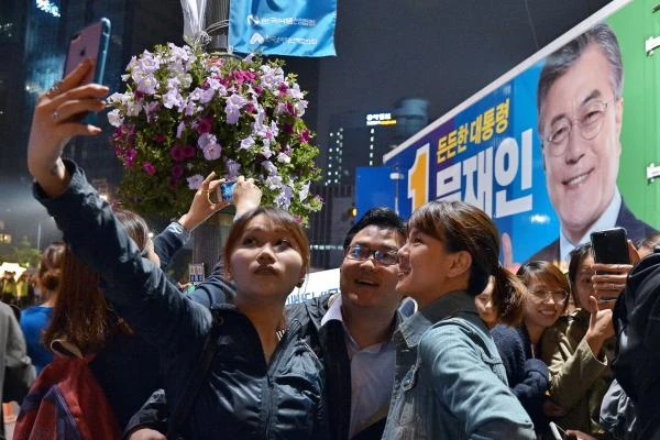 Những người ủng hộ ông Moon Jae-in vui mừng khi biết ông đắc cử tổng thống Hàn Quốc. Ảnh: UPI