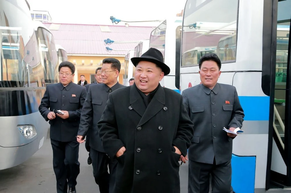Lãnh đạo Kim Jong-un thị sát một trạm xe buýt mới được khánh thành ở thủ đô Bình Nhưỡng. Ảnh do KCNA công bố ngày 1-2. Ảnh: KCNA