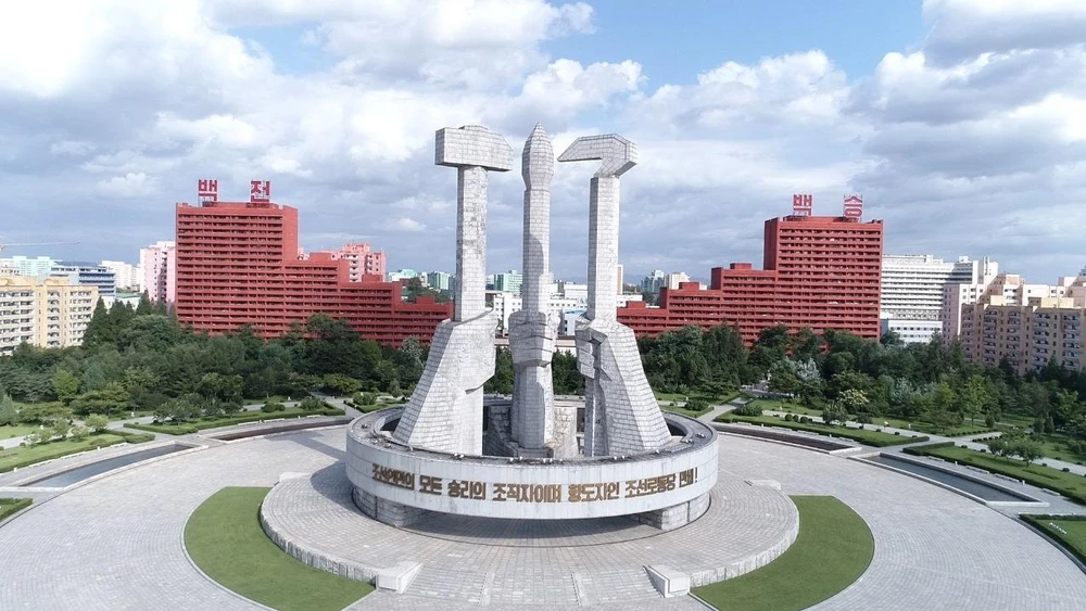 Song Luân tại quảng trường nơi đặt tượng của hai nhà lãnh đạo CHDCND Triều Tiên.