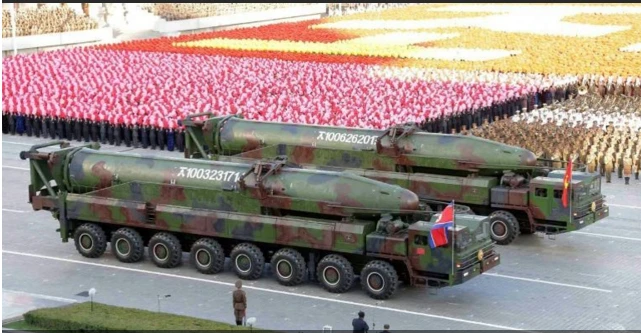 Tên lửa Triều Tiên được đưa quan Quảng trường Kim Nhật Thành, Bình Nhưỡng năm 2015 (Ảnh: AFP)