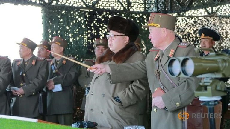 Nhà lãnh đạo Triều Tiên Kim Jong Un theo dõi một cuộc diễn tập của Quân đội nhân dân Triều Tiên (KPA) tại một địa điểm không xác định. (Ảnh: Reuters)