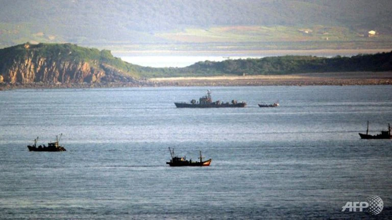 Một tàu tuần tra hải quân của Triều Tiên giữa các tàu đánh cá của Triều Tiên, trong vùng tranh chấp (Ảnh: AFP)