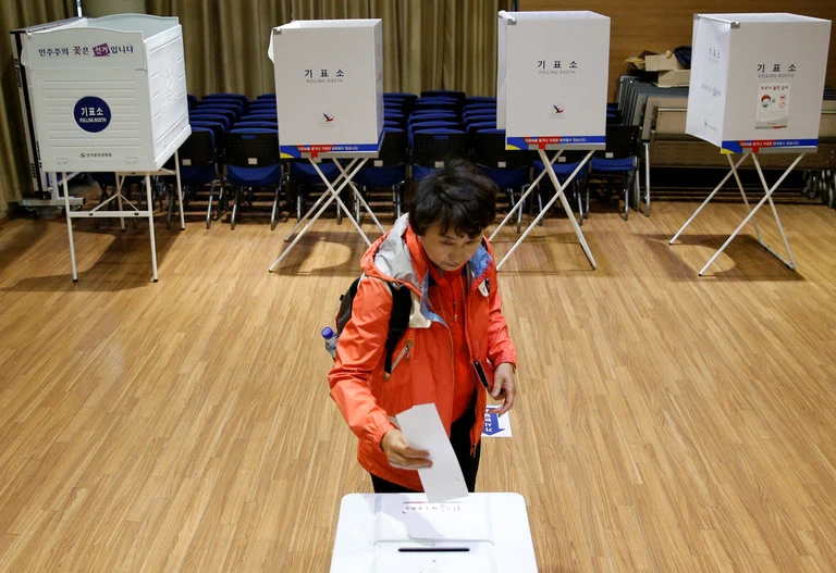 Người dân Hàn Quốc hôm nay đi bỏ phiếu chọn ra vị tổng thống mới của nước này. Ảnh: REUTERS
