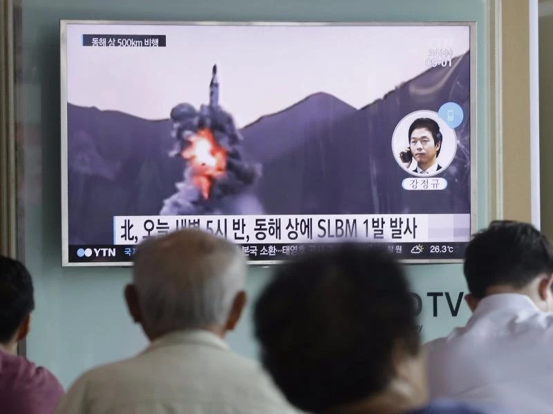 Hàn Quốc đưa tin về một vụ phóng tên lửa của Triều Tiên vào ngày 24-8-2016. Ảnh: AP