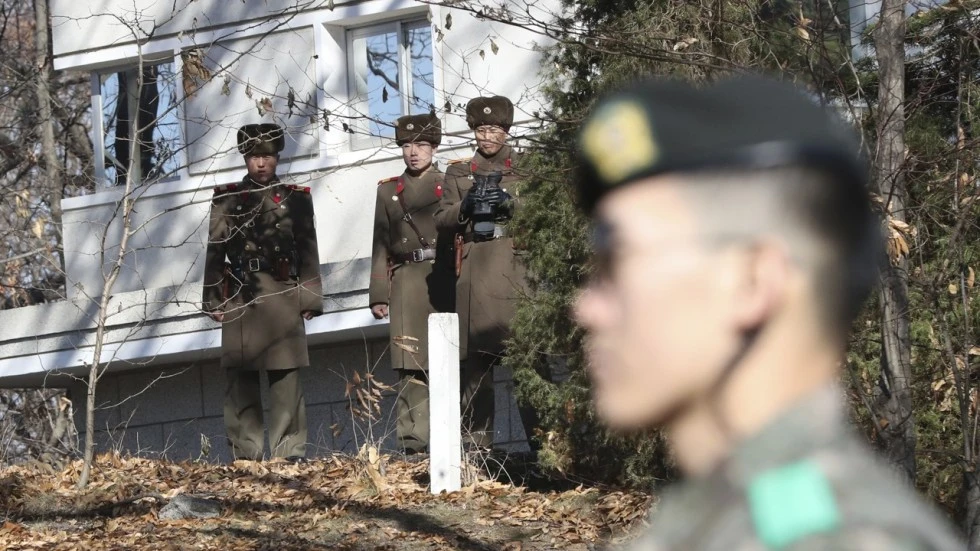 Binh sĩ Hàn Quốc và Triều Tiên tại làng biên giới Bàn Môn Điếm. Ảnh: SCMP