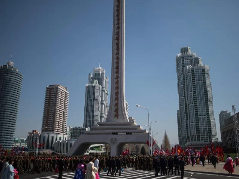 Triều Tiên khai trương khu phức hợp nhà ở, mua sắm với một loạt tòa nhà chọc trời hiện đại trên đường Ryomyong ở thủ đô Bình Nhưỡng. Ảnh: SPUTNIK