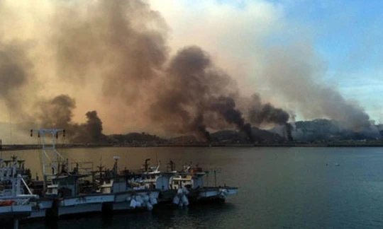 Đảo Yeonpyoeng của Hàn Quốc bị pháo kích vào năm 2010. (Ảnh: AP)
