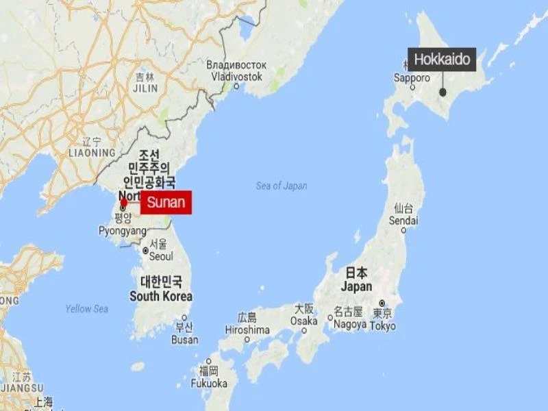 Vị trí khu vực Sunan của Triều Tiên và đảo Hokkaido của Nhật Bản. Ảnh: CNN