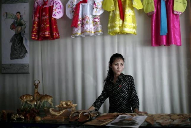 Một người phụ nữ bán quà lưu niệm tại khu thành phố Rason, đặc khu kinh tế phía Đông Bắc thủ đô Bình Nhưỡng (Ảnh: Reuters)