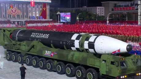 Tên lửa đạn đạo xuyên lục địa vừa được ra mắt của Triều Tiên. Ảnh: CNN