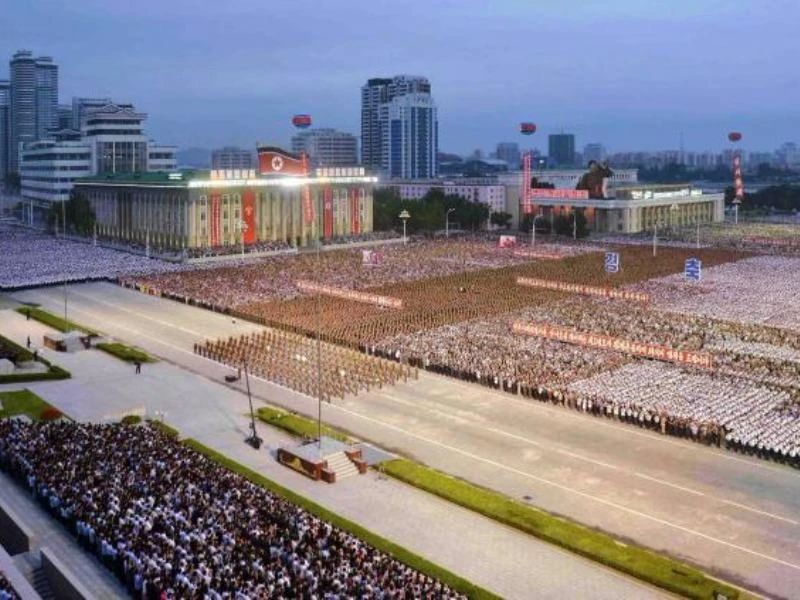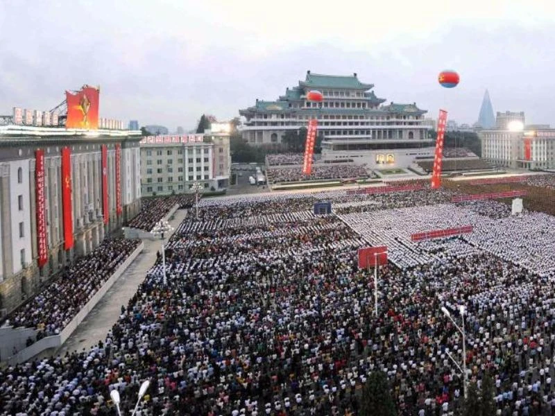 Hàng ngàn người dân Triều Tiên có mặt tại quảng trường Kim Nhật Thành. Ảnh: KCNA