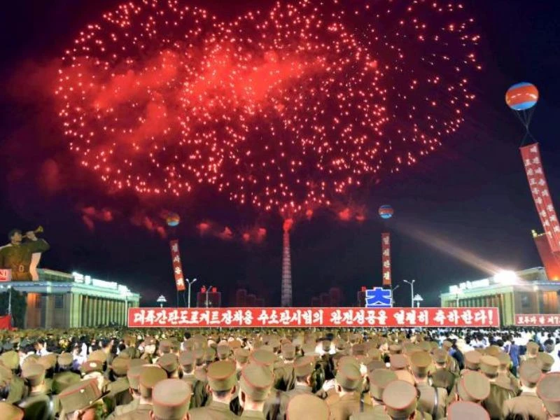 Cảnh bắn pháo hoa ăn mừng vụ thử hạt nhân lần thứ sáu. Ảnh: KCNA
