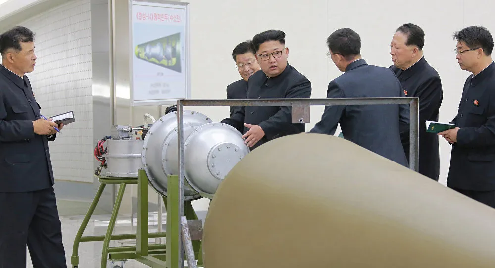 Nhà lãnh đạo Triều Tiên Kim Jong-un chỉ đạo các quan chức về một chương trình hạt nhân vào ngày 3-9-2017. Ảnh: REUTERS