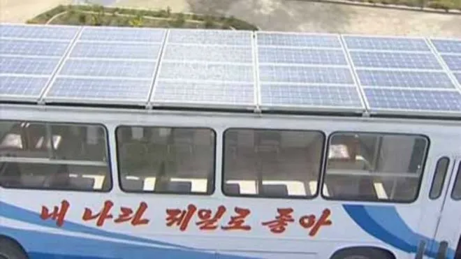 Hình ảnh từ đài truyền hình trung ương Triều Tiên cho thấy chiếc xe buýt được lắp rất nhiều tấm pin mặt trời.
