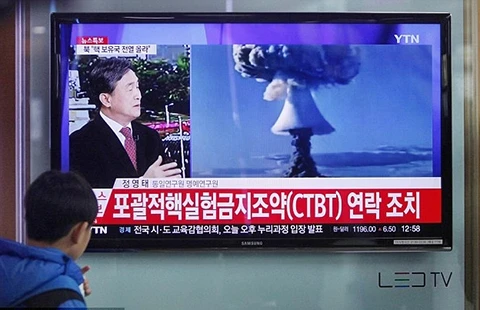 Ngày 6-1, người dân Seoul xem truyền hình vụ thử hạt nhân của Triều Tiên. Ảnh: YTN