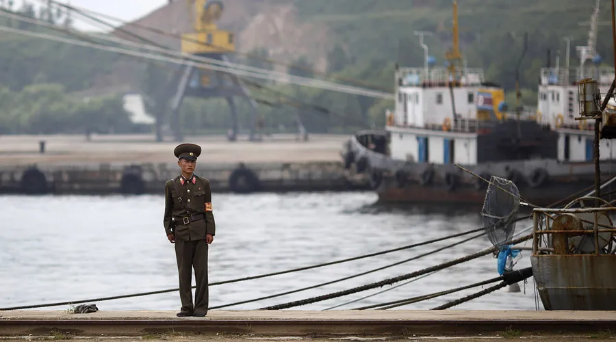 Lính Triều Tiên canh gác tại khu cảng ở Rason. Ảnh: RT