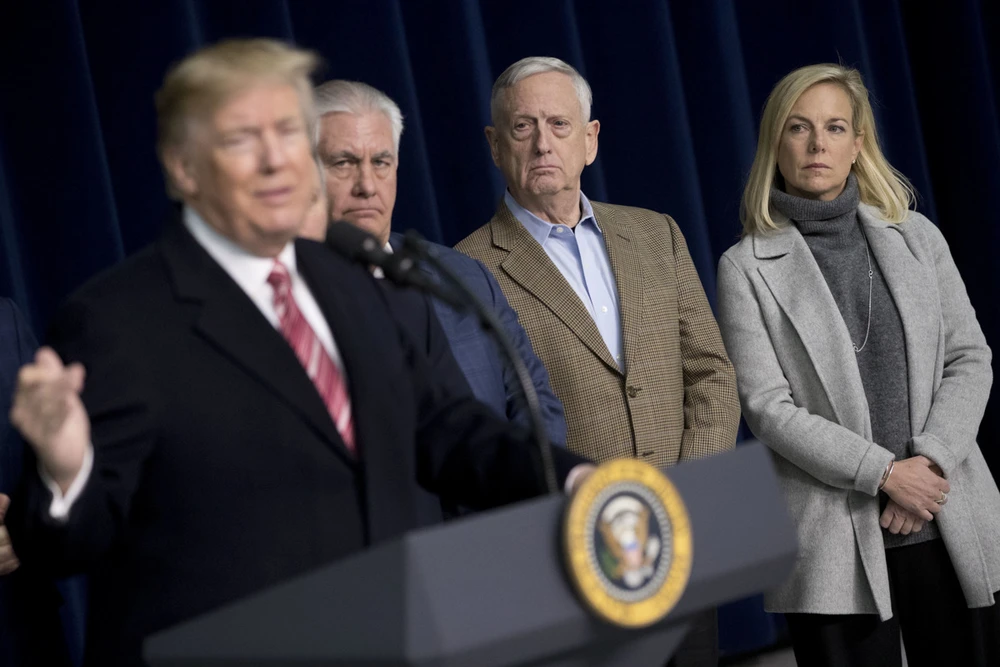 Tổng thống Donald Trump phát biểu tại buổi họp báo ở Maryland vào ngày 6-1. Ảnh: AP