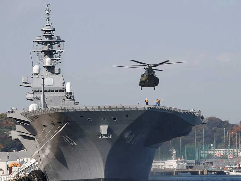 Tàu sân bay trực thăng Izumo có khả năng được Thủ tướng Shinzo Abe cho nâng cấp, báo hiệu sự trỗi dậy về quân sự của Nhật Bản. Ảnh: JAPAN TIMES