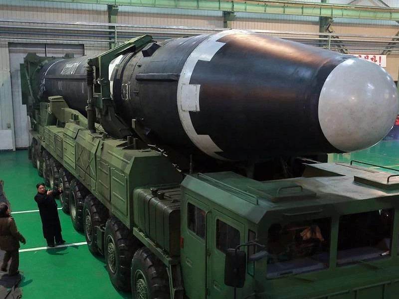 Tên lửa Hwasong-15 được Triều Tiên dùng trong vụ phóng rạng sáng 29-11. Ảnh: RODONG SINMUN