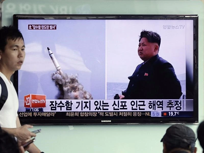 Truyền thông Hàn Quốc đưa tin về một vụ phóng tên lửa từ tàu ngầm của Triều Tiên. Ảnh: AP