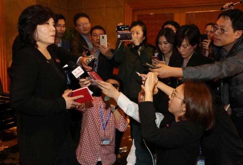 Thứ trưởng Bộ Ngoại giao Triều Tiên Choe Son-hui trả lời phóng viên tại buổi họp báo. Ảnh: REUTERS