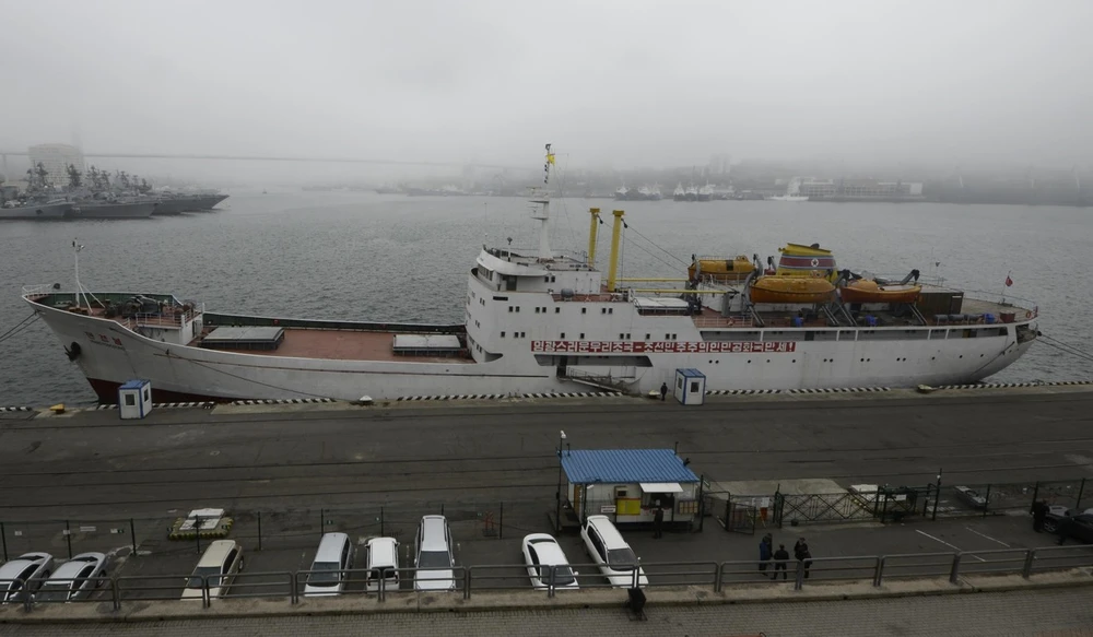 Phà Mangyongbong của Triều Tiên cập cảng Vladivostok của Nga. Ảnh: SCMP