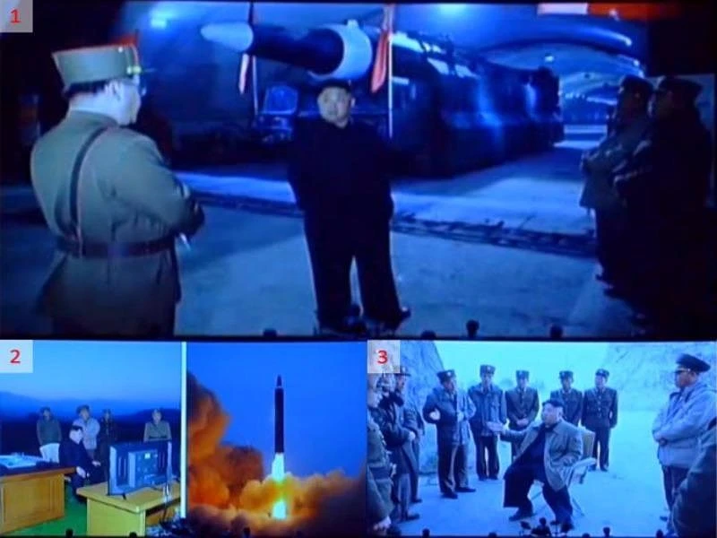 Ông Kim Jong-un thị sát ba vụ phóng Hwasong-12 hồi tháng 4-2017. Ảnh: DIPLOMAT