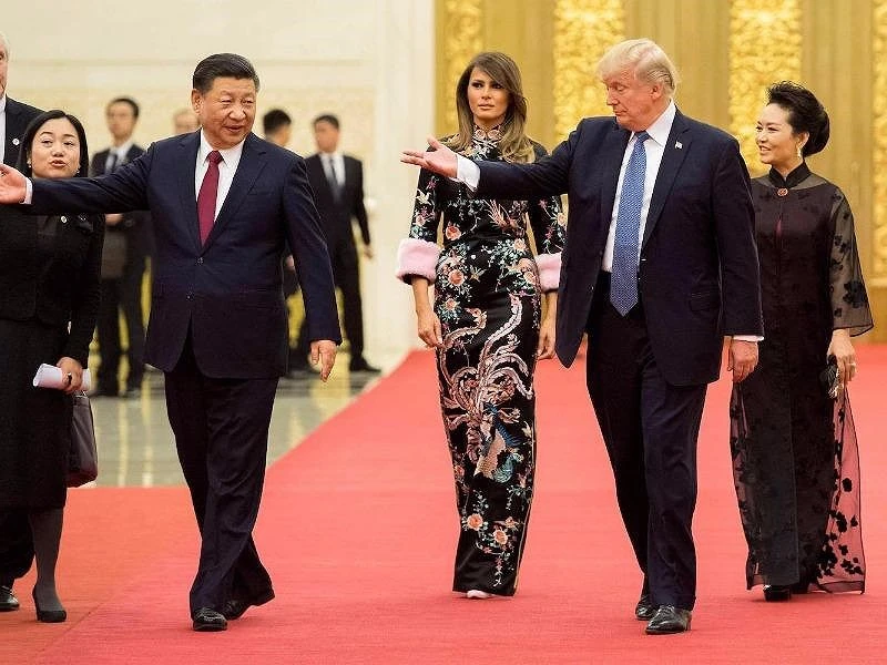 Tổng thống Mỹ Donald Trump có mặt tại Đại lễ đường nhân dân ở Bắc Kinh cùng Chủ tịch Trung Quốc Tập Cận Bình hôm 9-11 trong chuyến công du Trung Quốc hai ngày. Ảnh: GETTY