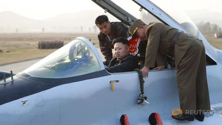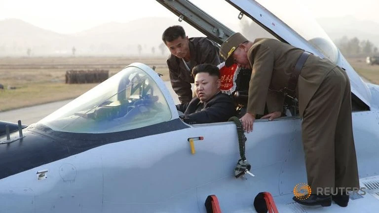 Kim Jong-un ngồi trong máy bay và hướng dẫn phi công để chuẩn bị cho một cuộc diễu hành trên không (nguồn: channelnewsasian.com)