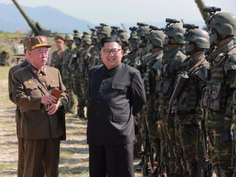 Ảnh được KCNA cung cấp hôm 25-8 cho thấy lãnh đạo Triều Tiên Kim Jong-un giám sát một cuộc tập trận chiếm đảo của quân đội nhân dân Triều Tiên (KPA). Ảnh: KCNA
