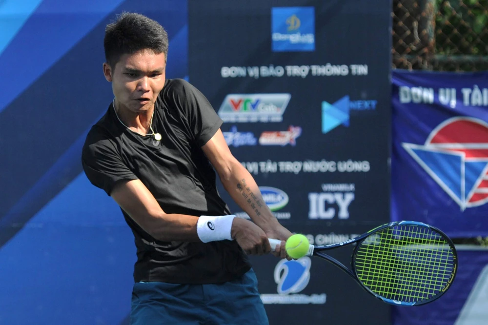 Tay vợt Trịnh Linh Giang thắng ngược dòng, hạ đối thủ người Ấn Độ trong trận đấu kéo dài hơn hai giờ. Ảnh: VTF