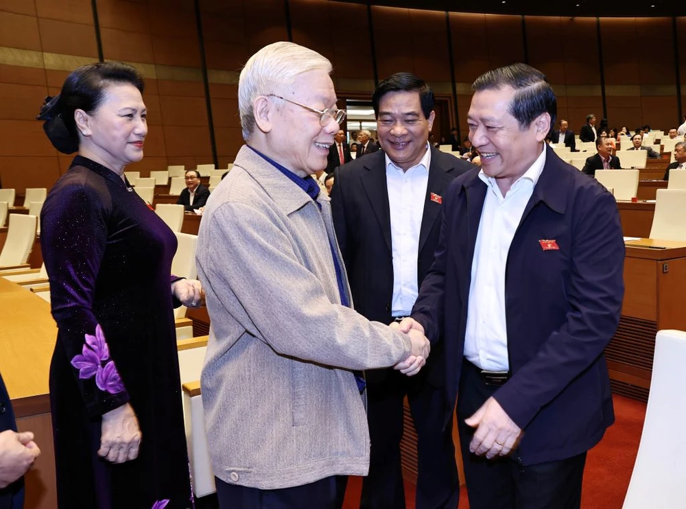 Chủ tịch nước Nguyễn Phú Trọng cùng các đại biểu Quốc hội tại kỳ họp thứ 11. Ảnh: QH
